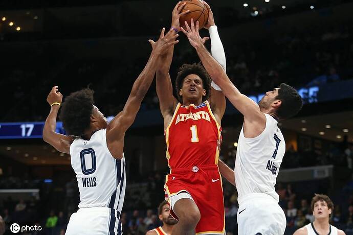 灰熊队首发:杰伦-威尔斯、肯塔维奥斯-考德威尔-波普、桑蒂-阿尔达马、泰-杰罗姆、乔克-兰代尔